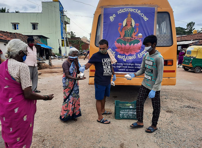Sri Navanaarasimha Nithya Annadhana Trust organized a food distribution drive in Kanakapura taluk as COVID second wave hit Karnataka. The Honorable chief minister made a decision of locking Karnataka in concern of the rising COVID cases and farmers and daily wage workers were worst hit by this decision. The management and volunteers decided to provide one meal a day to daily wage workers and farmers who are hit by the second wave of COVID and lockdown in Karnataka. We have served food to over 50 villages in Kanakapura Taluk. We have served over 50,000 meals in the COVID lockdown.